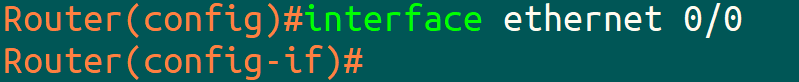 - 接口的指定配置模式命令提示符为(config-if)#,比如显示Router(config-if)#