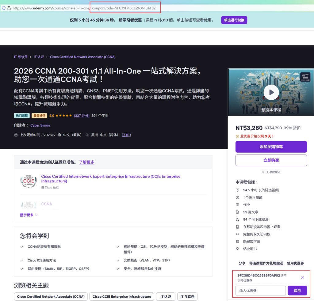 CCNA 课程优惠券链接