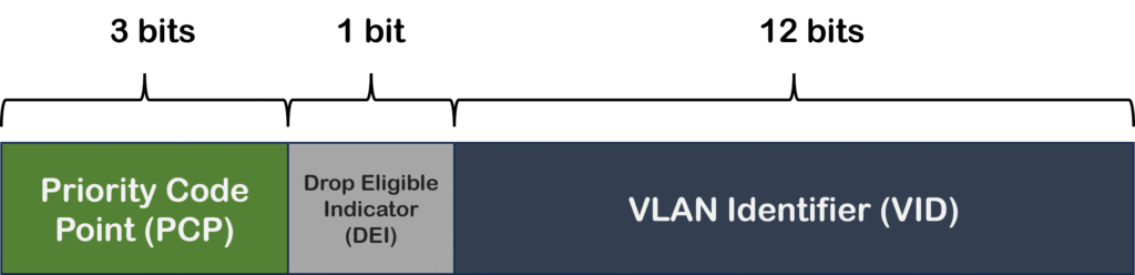 - VLAN ID,12个比特,用于表示VLAN的ID,取值是0-4095,0 和 4095 作为保留,有效 VLAN ID 范围是 1-4094。