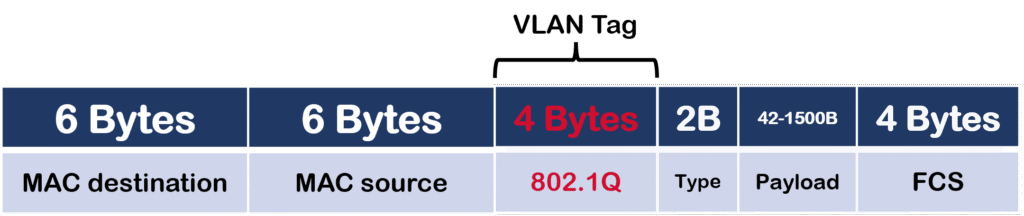 VLAN相关的标准被放置在802.1Q系列项目当中,发布于 1998 年,后续有多次更新。在802.1Q中定义了 VLAN 帧格式和协议标准。